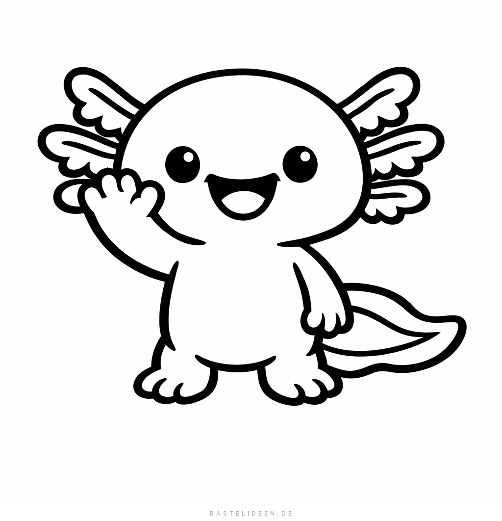 Ein freundlicher Axolotl winkt fröhlich zur Begrüßung - niedlich und einfach.