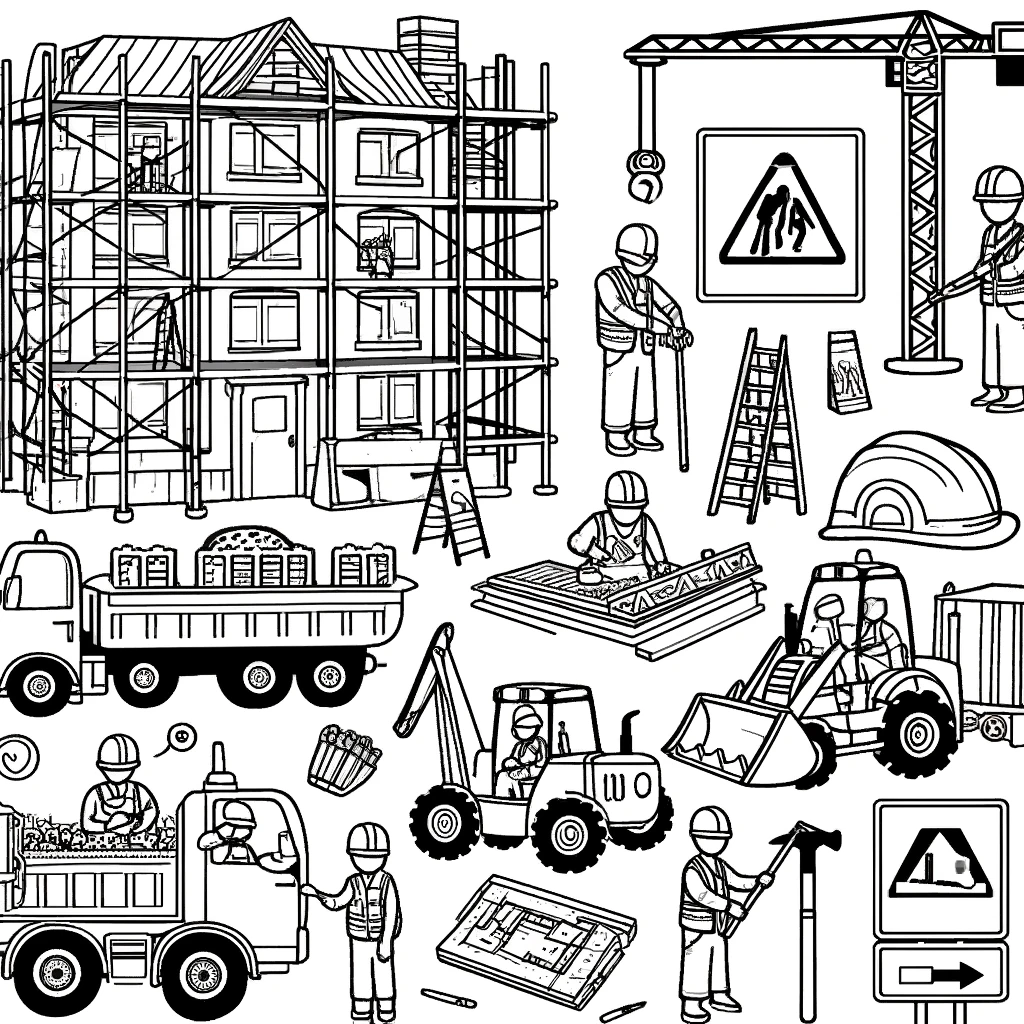 Von Baggern und Kränen bis hin zu Bauarbeitern und Werkzeugen sind diese Illustrationen perfekt für Kinder und Erwachsene gleichermaßen. Beginne noch heute dein Malabenteuer und erwecke die dynamische Welt der Baustellen mit lebendigen Farben zum Leben!