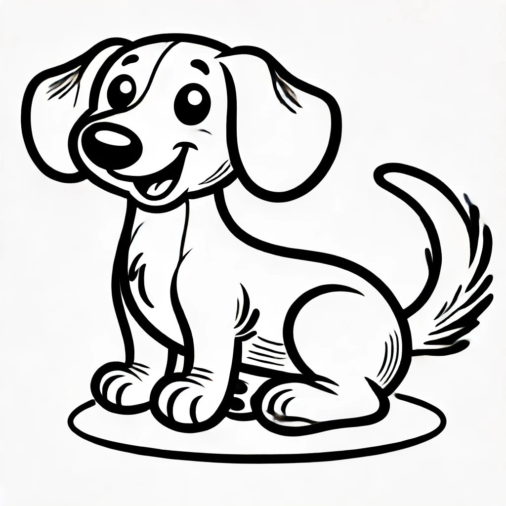 Dieses bezaubernde Ausmalbild zeigt einen niedlichen Dackel, der fröhlich sitzt, mit einem freundlichen Ausdruck und einem wedelnden Schwanz. Das einfache und liebenswerte Design ist perfekt für Kinder und Erwachsene, die Hunde lieben und gerne ausmalen.
