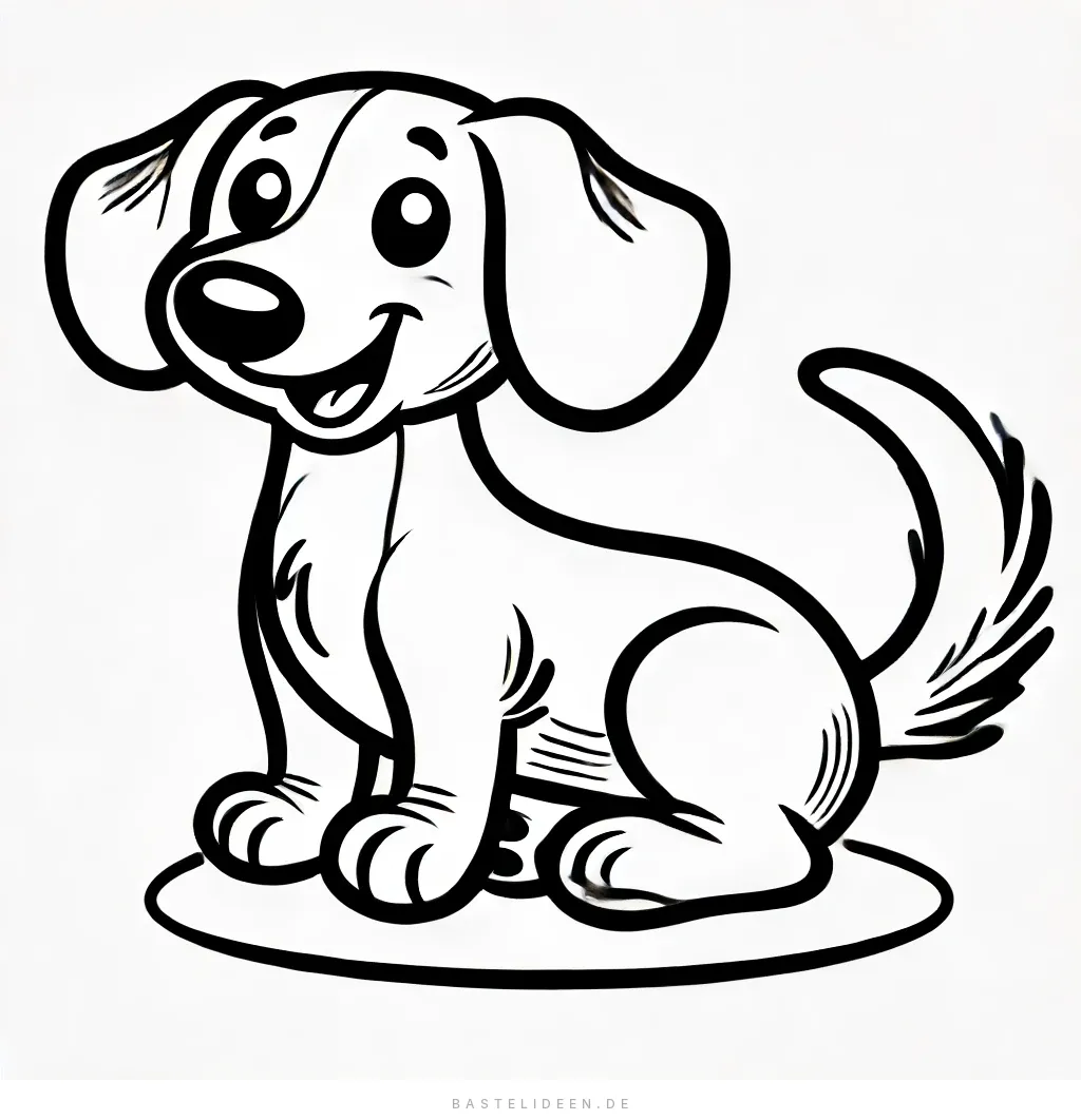 Dieses bezaubernde Ausmalbild zeigt einen niedlichen Dackel, der fröhlich sitzt, mit einem freundlichen Ausdruck und einem wedelnden Schwanz. Das einfache und liebenswerte Design ist perfekt für Kinder und Erwachsene, die Hunde lieben und gerne ausmalen.