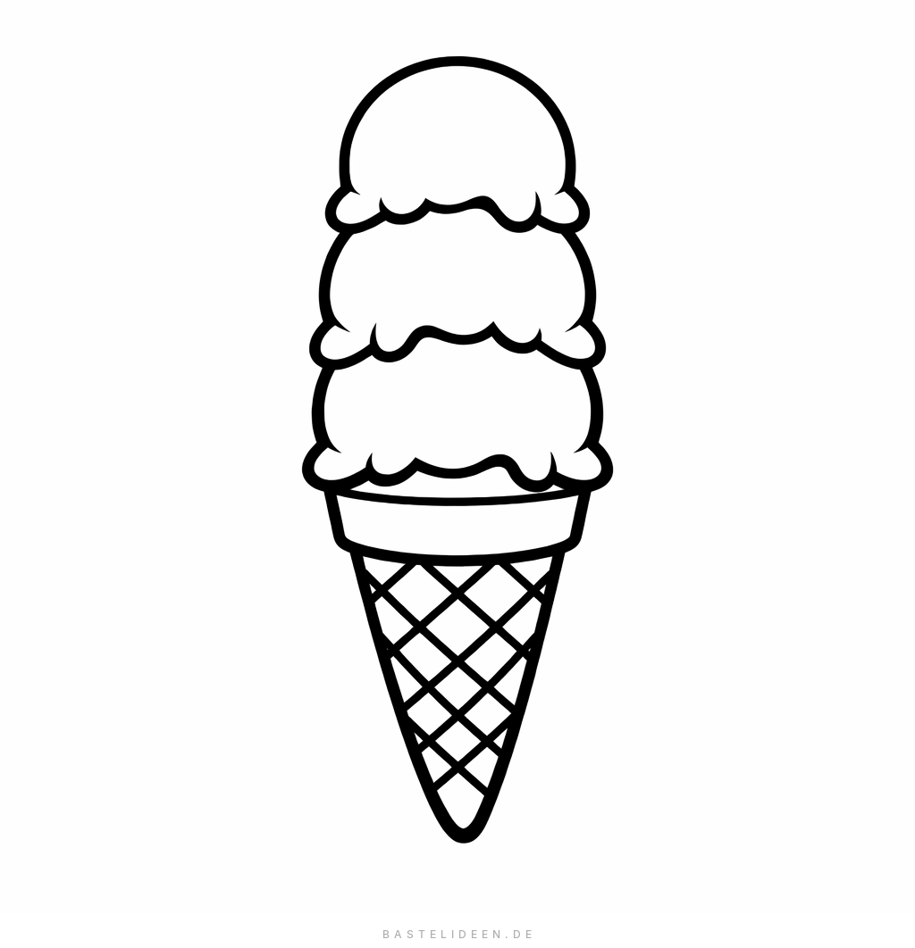 Leckeres Ausmalbild mit einer Eistüte und drei gestapelten Eiskugeln.