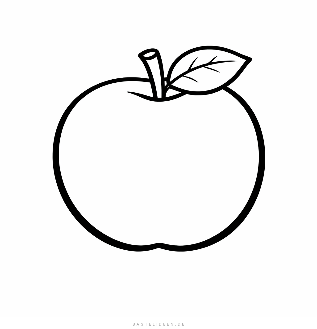 Einfaches Apfel-Ausmalbild mit großen Flächen und dicken Konturen, perfekt für kleine Kinder ab 3 Jahren.