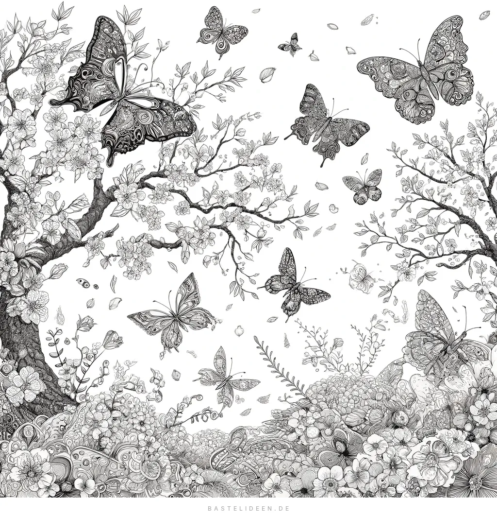 Schmetterlinge im Frühlingsgarten Ausmalbild