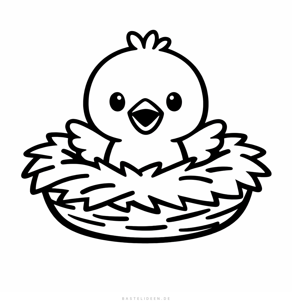 Niedliches Vogelbaby-Ausmalbild mit einfachen Formen, ideal für Kleinkinder ab 3 Jahren.