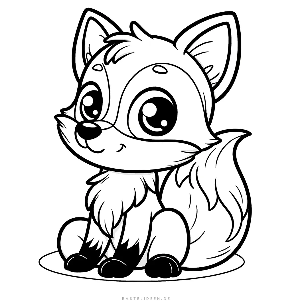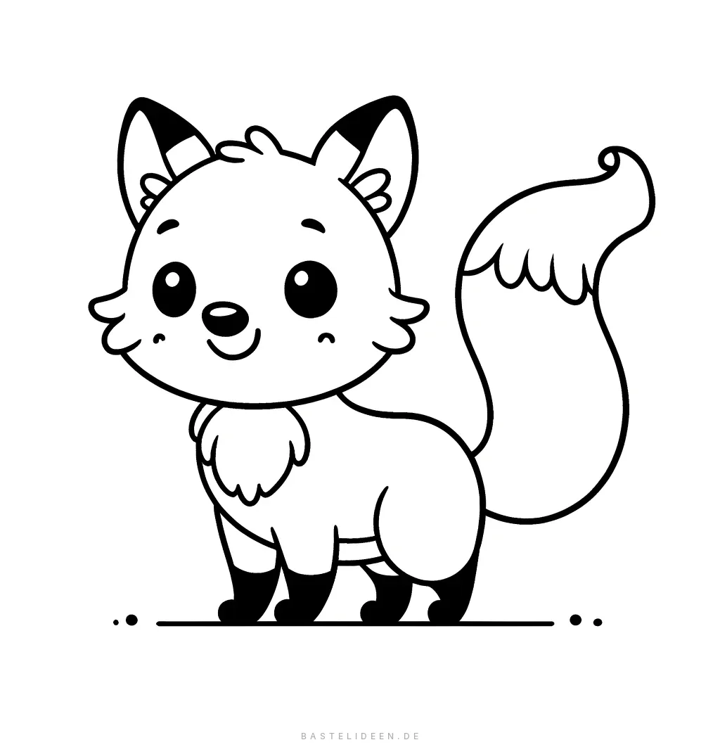 Entzückendes Ausmalbild eines niedlichen Fuchses im Cartoon-Stil mit großen Augen und buschigem Schwanz.