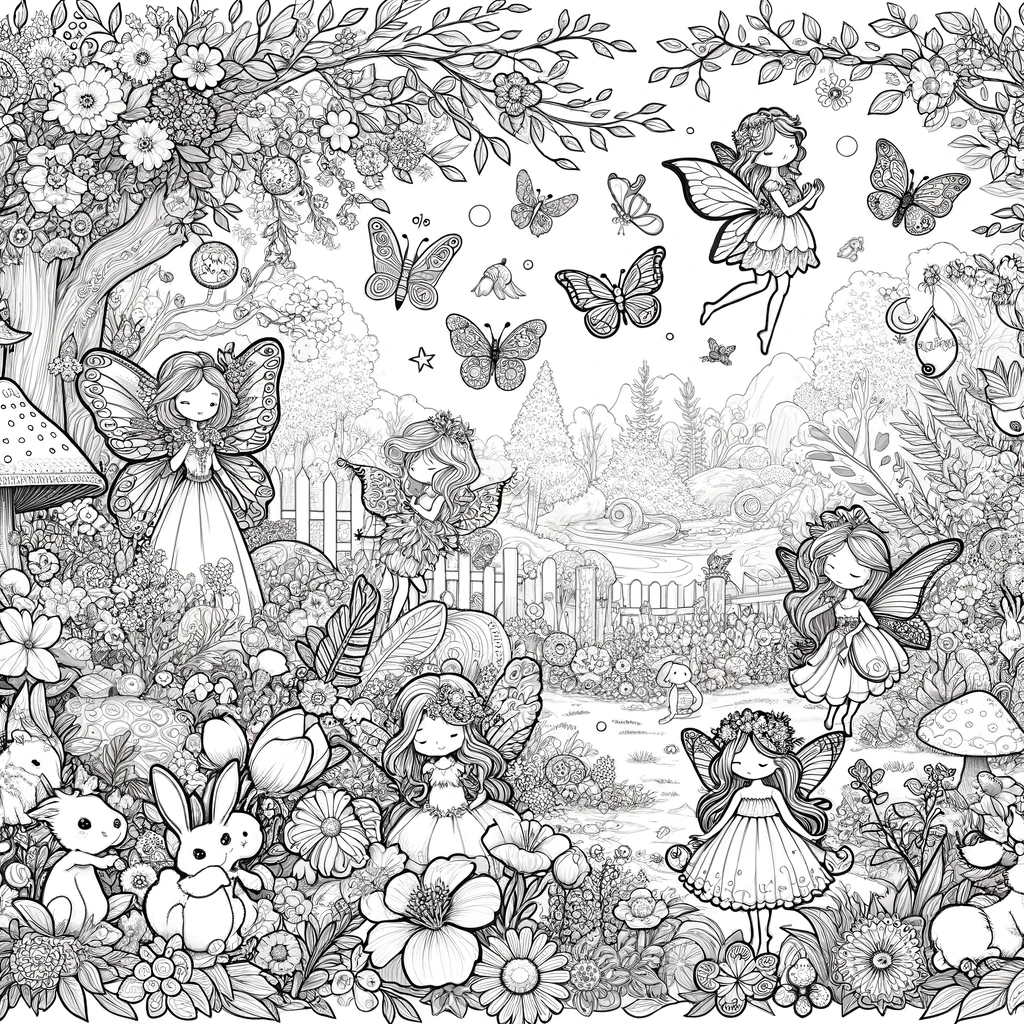 Mit entzückenden Feen, flatternden Schmetterlingen und einem Blumengarten lädt dieses verlockende Bild zu Kreativität und Fantasie ein.