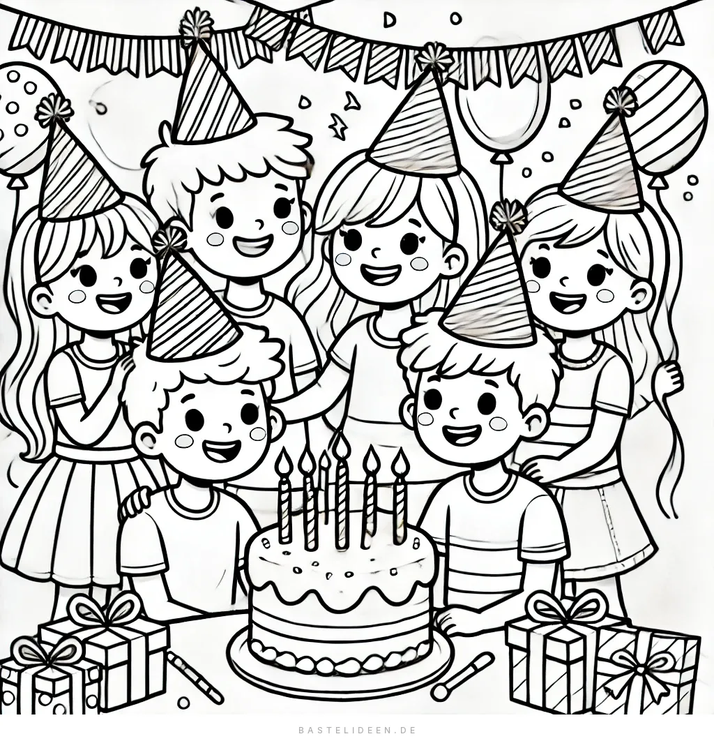 Dieses niedliche Ausmalbild fängt die Freude einer Geburtstagsfeier unter Freunden ein!