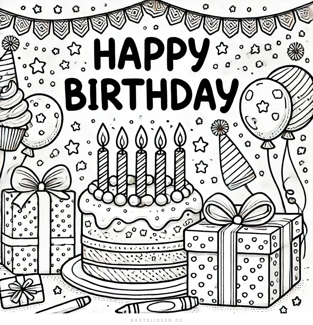 Dieses lebendige Ausmalbild bringt die Geburtstagsstimmung perfekt zur Geltung!