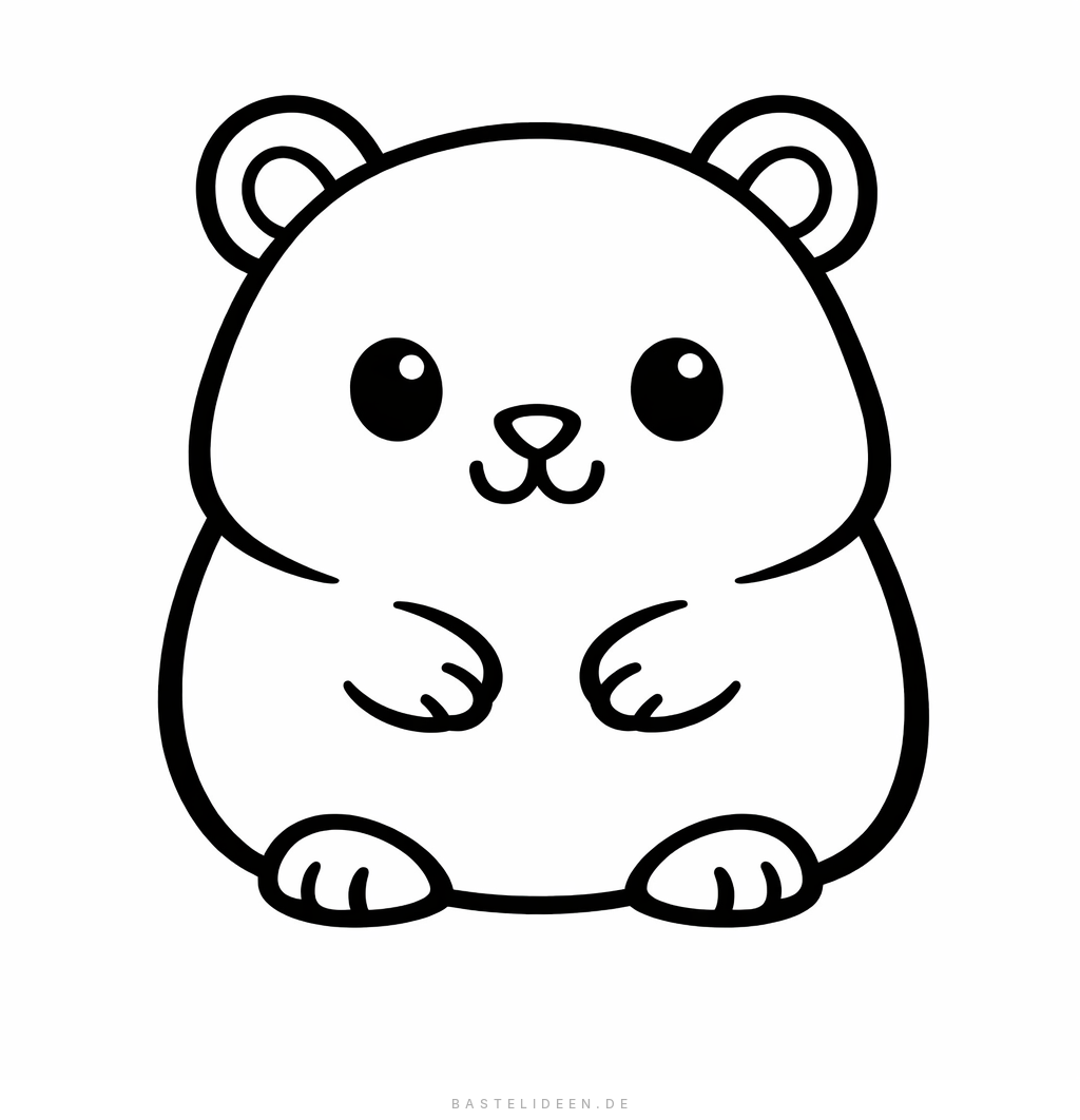 Ein süßer kleiner Hamster sitzt aufrecht und schaut dich mit großen Augen an. Perfekt für kleine Künstler zum Ausmalen.
