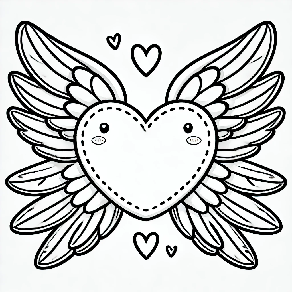 Dieses niedliche Ausmalbild zeigt ein Herz mit federleichten Flügeln, das ihm eine himmlische und verspielte Ausstrahlung verleiht. Mit freundlichen Augen und rosa Bäckchen lädt das Herz dazu ein, es mit den eigenen Lieblingsfarben zu gestalten.