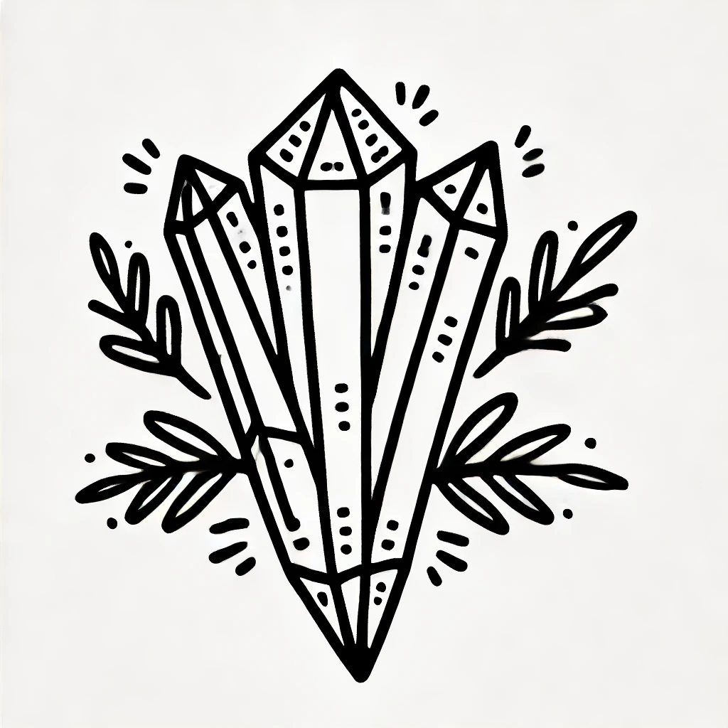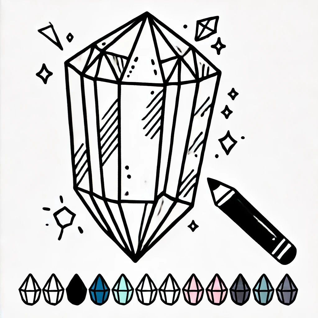 Das beigefügte Bild zeigt einen atemberaubenden Kristall, kunstvoll gestaltet mit scharfen geometrischen Linien und Facetten. Begleitet von kleinen funkelnden Sternen und anderen Kristallformen, ist diese Illustration perfekt für diejenigen, die detaillierte und faszinierende Designs lieben.