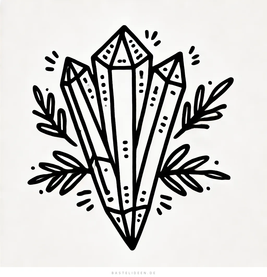 Das beigefügte Bild zeigt einen atemberaubenden Kristall, kunstvoll gestaltet mit scharfen geometrischen Linien und Facetten. Begleitet von kleinen funkelnden Sternen und anderen Kristallformen, ist diese Illustration perfekt für diejenigen, die detaillierte und faszinierende Designs lieben.
