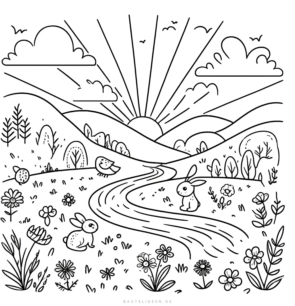 Entfessle deine Ausmalkünste mit diesen kostenlosen Landschafts-Malvorlagen zum Ausdrucken.