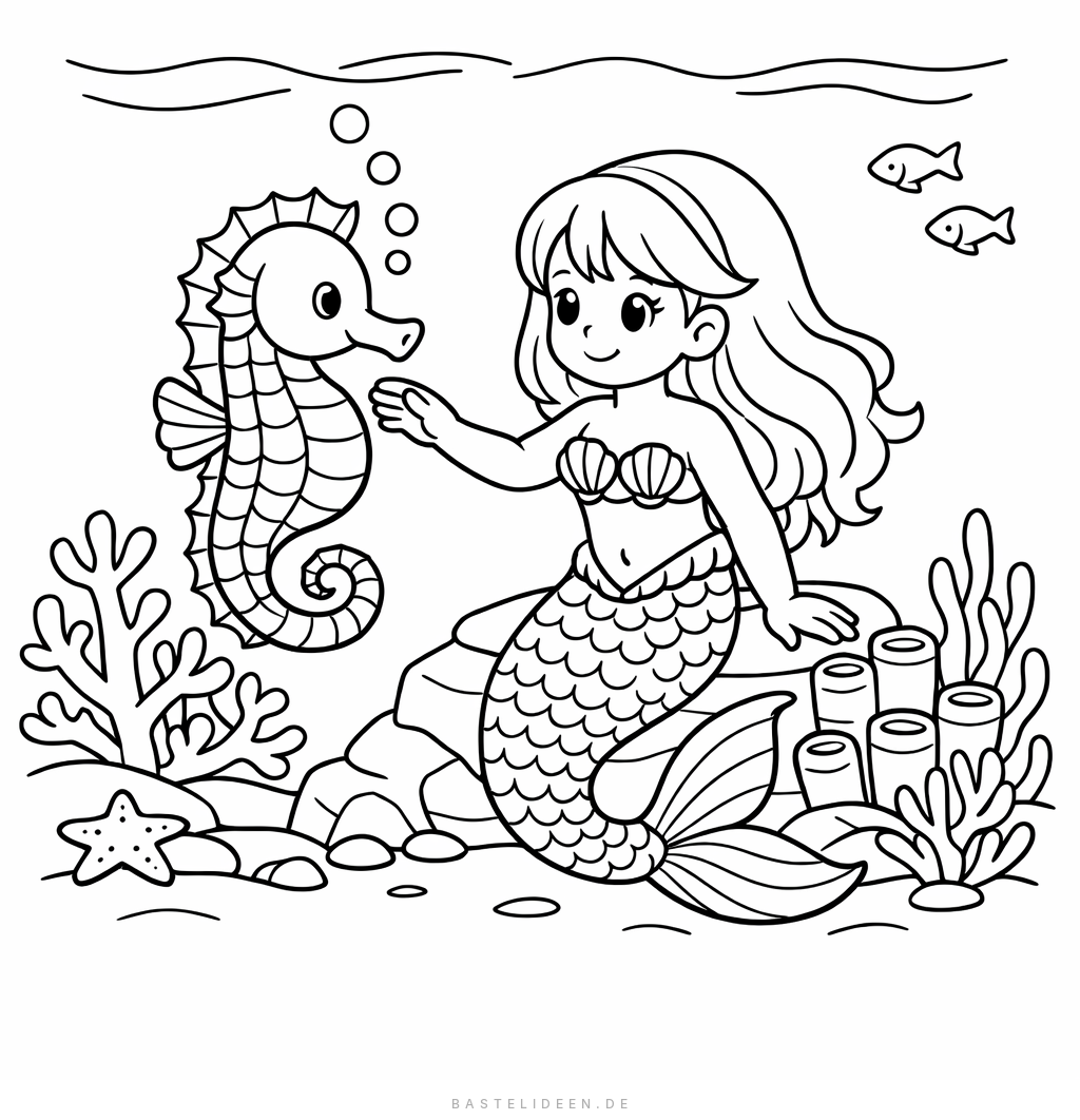 Tauche ein in die Unterwasserwelt und male deine eigene Meerjungfrau in deinen Lieblingsfarben!
