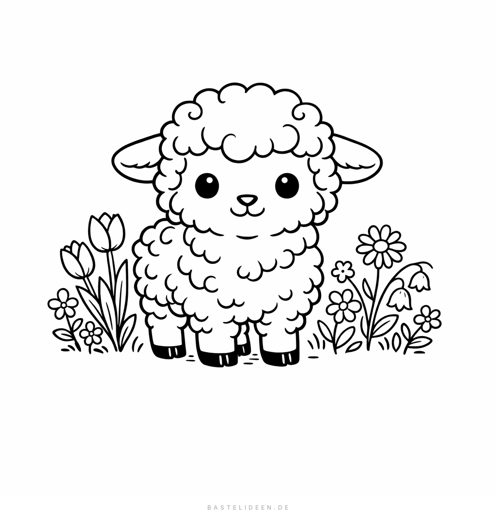 Ein süßes Lämmchen mit wolligem Fell und einfachen Blumen – perfekt für kleine Kinder ab 3 Jahren.