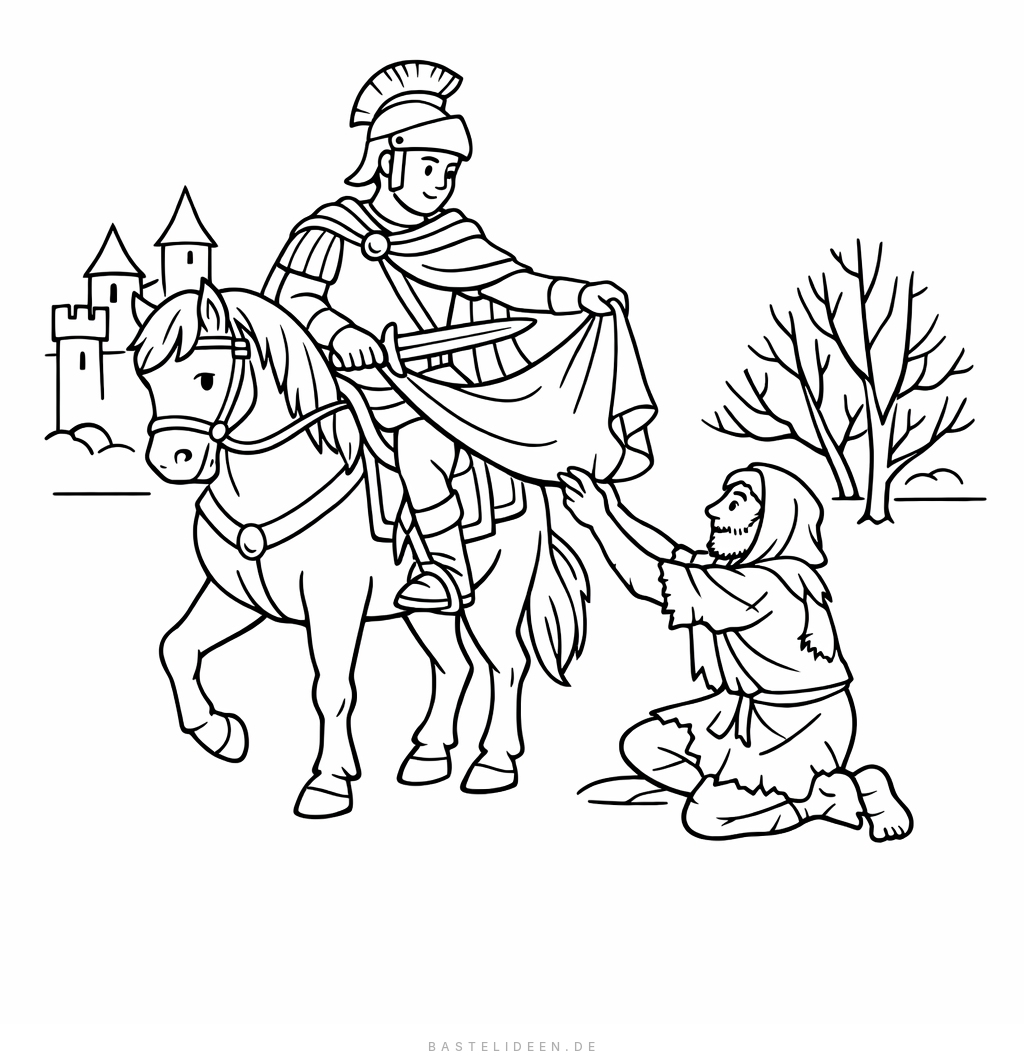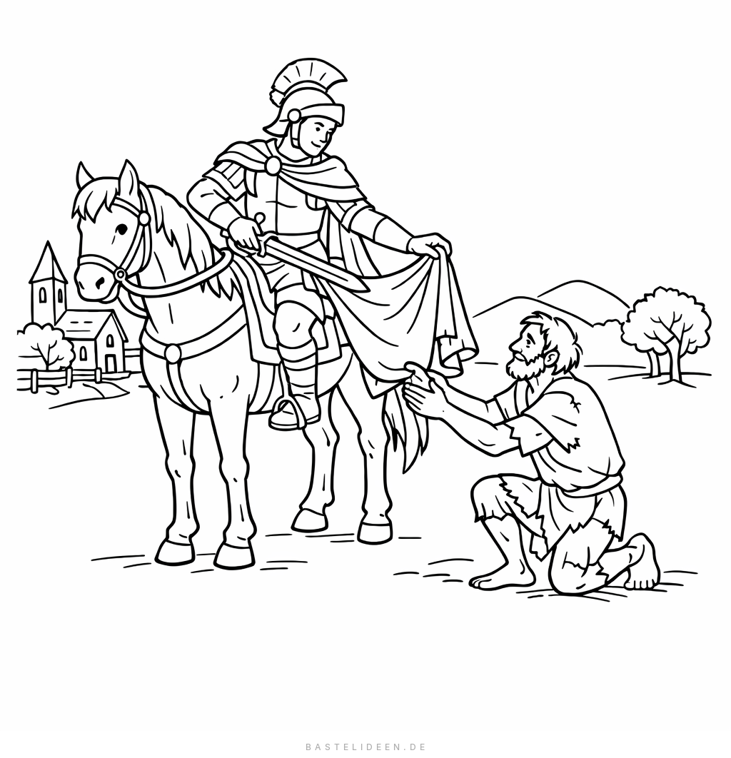 Unsere kostenlosen Sankt-Martin-Ausmalbilder zeigen die berühmte Mantelteilung, Laternenumzüge und natürlich die Martinsgänse.