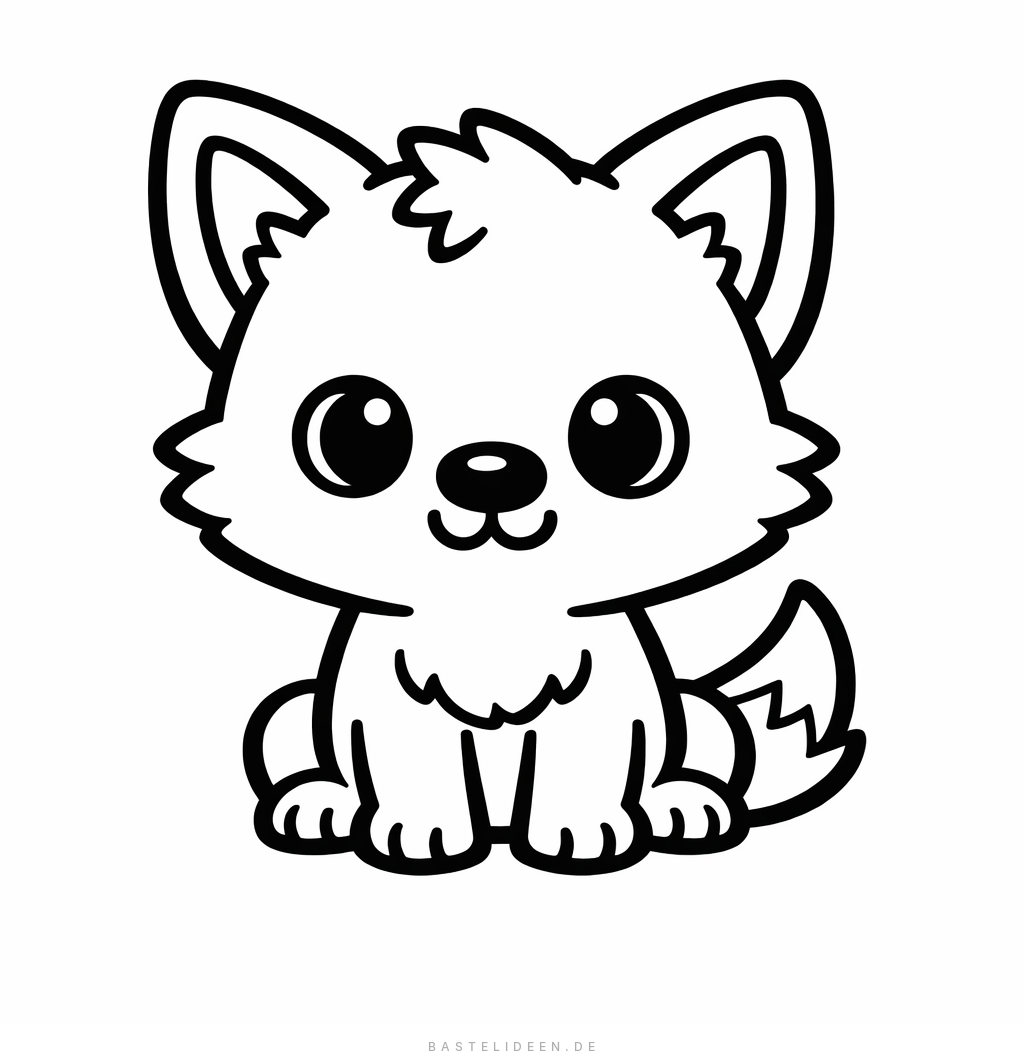 Ein freundlicher Cartoon-Wolf mit großen Augen - einfach und süß für kleine Kinder.