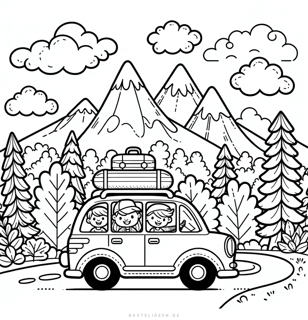 Auf eine fröhliche Autoreise geht es mit unserer ansprechenden Ausmalbildvorlage, die perfekt für kleine Entdecker und Auto-Fans geeignet ist.