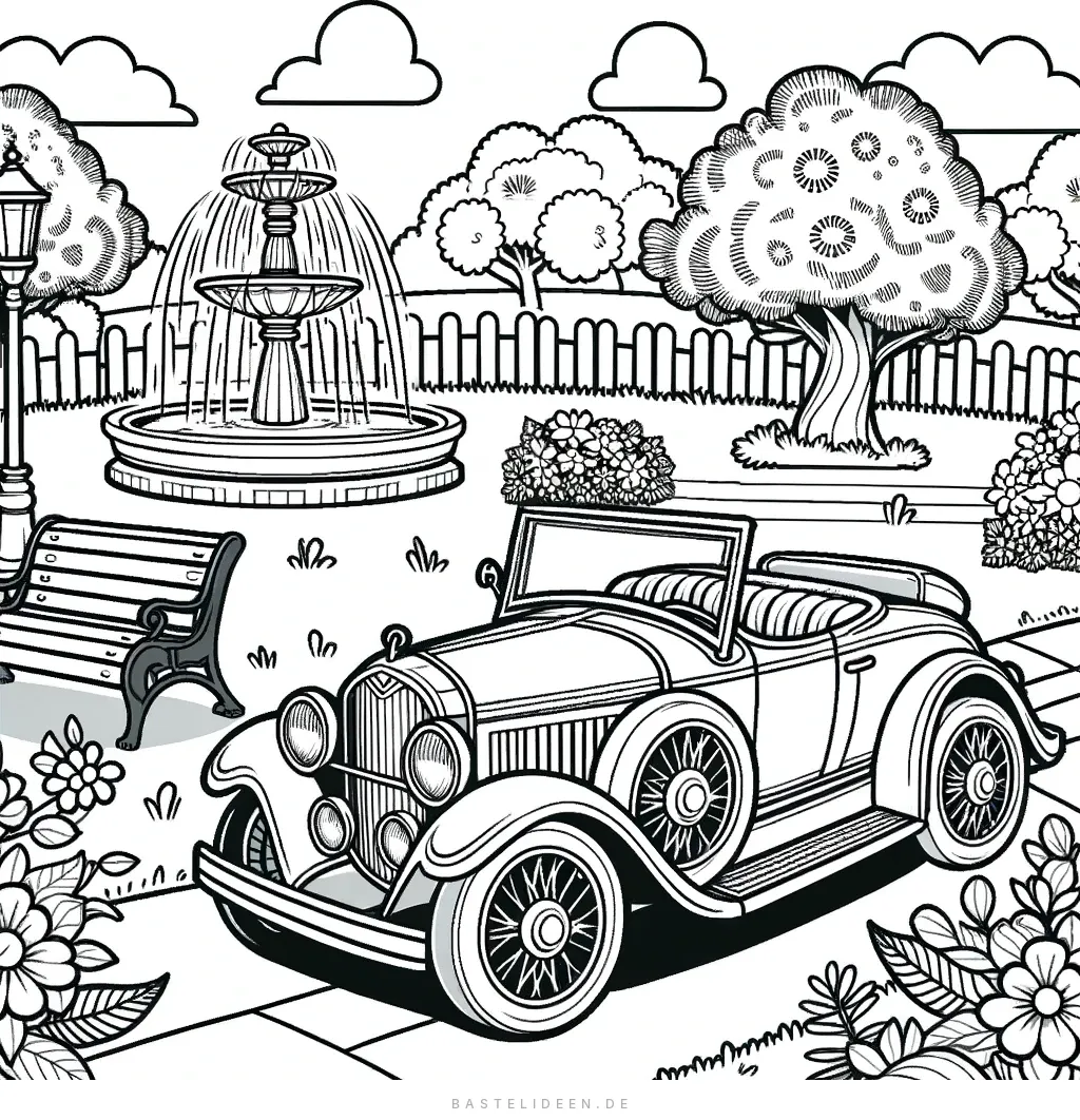 Entdecke die Eleganz vergangener Zeiten neu mit unserem Vintage-Auto-Ausmalbild, perfekt für alle, die die klassische Schönheit von Oldtimern zu schätzen wissen.