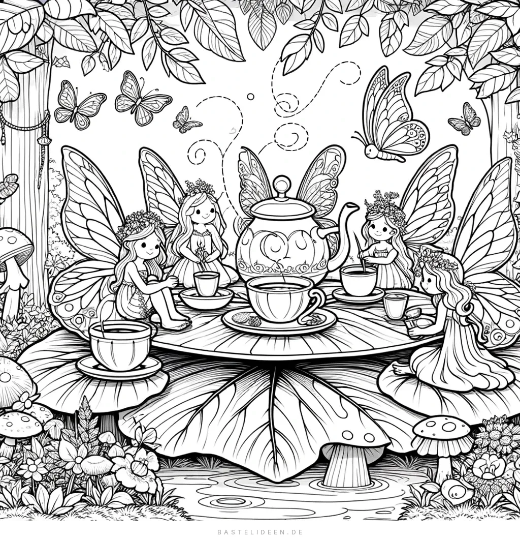 Verspieltes Feen-Teeparty Ausmalbild