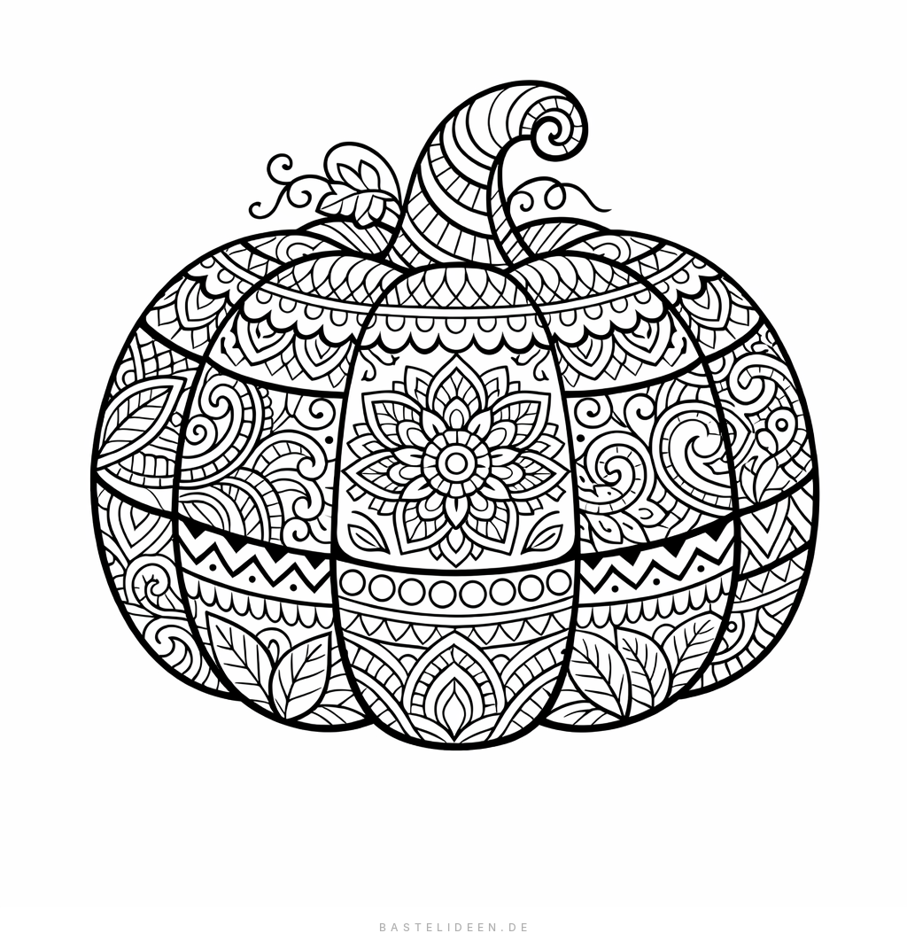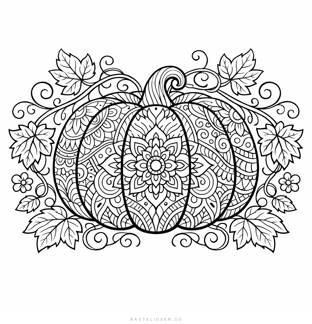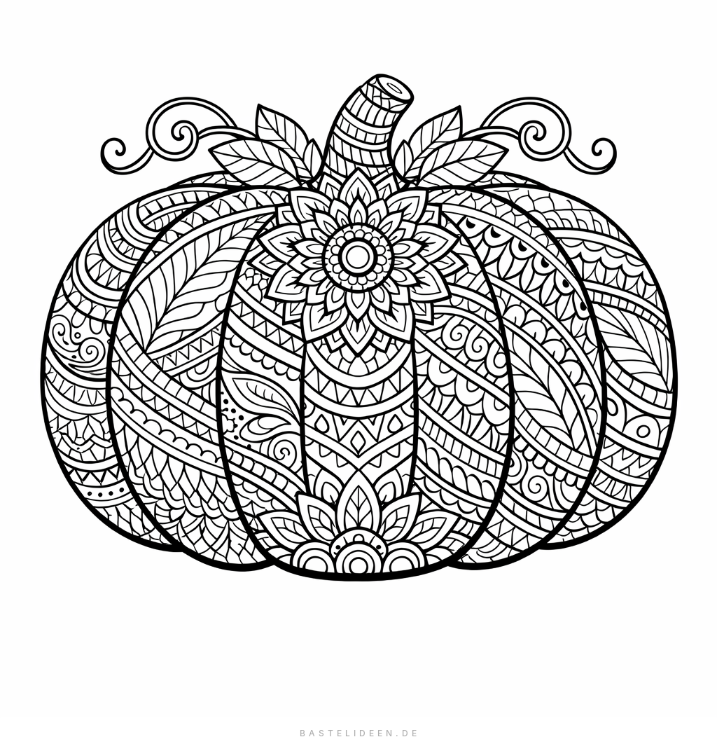 Kunstvoller Kürbis mit floralen Elementen für anspruchsvolle Ausmaler.