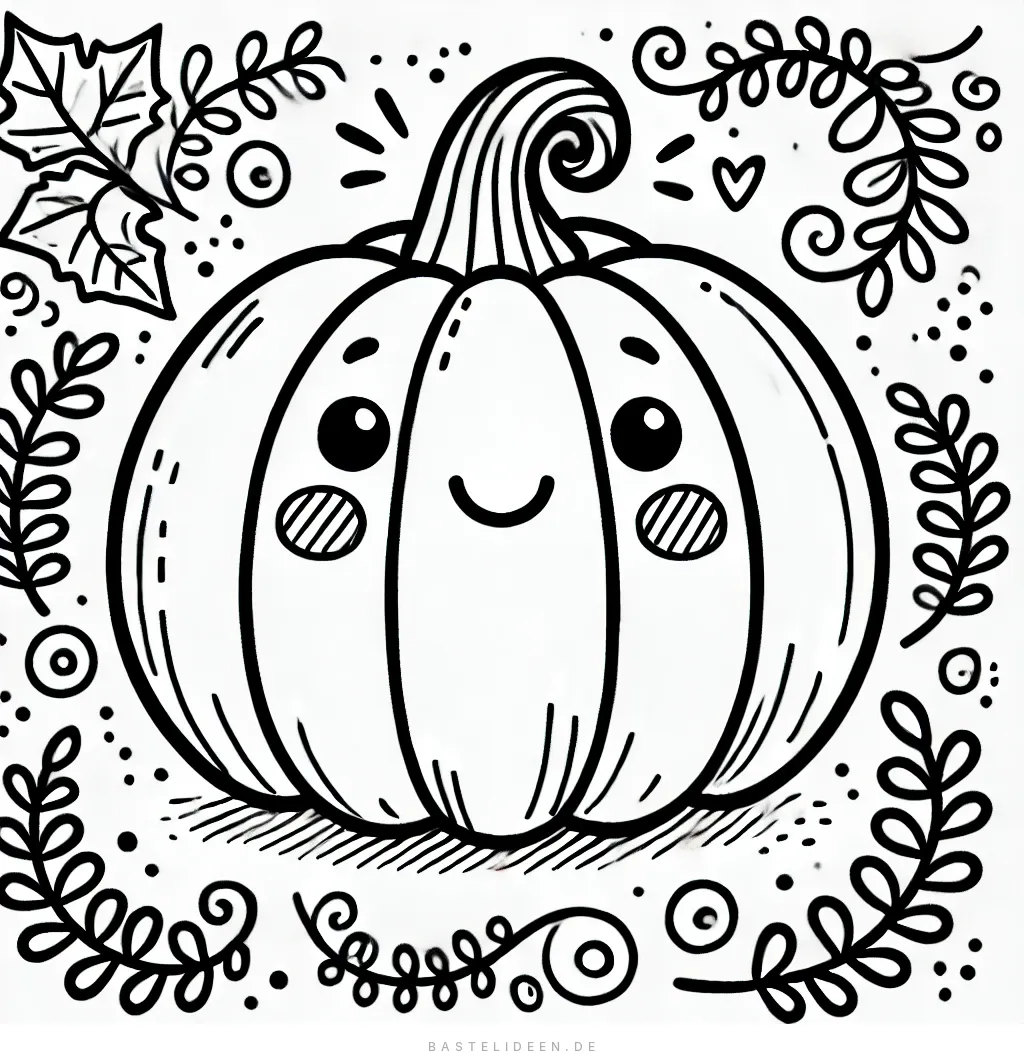 Diese niedliche Kürbis-Ausmalvorlage ist perfekt für alle, die kreative Beschäftigungen lieben. Mit ihrem fröhlichen Gesicht, den geschwungenen Blättern und den verspielten herbstlichen Details lädt sie dazu ein, die Herbstzeit auf kreative Weise zu genießen.