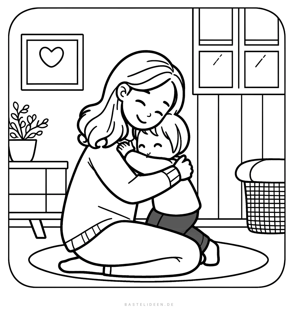 Herzergreifendes Mutter-Kind-Umarmungs-Ausmalbild