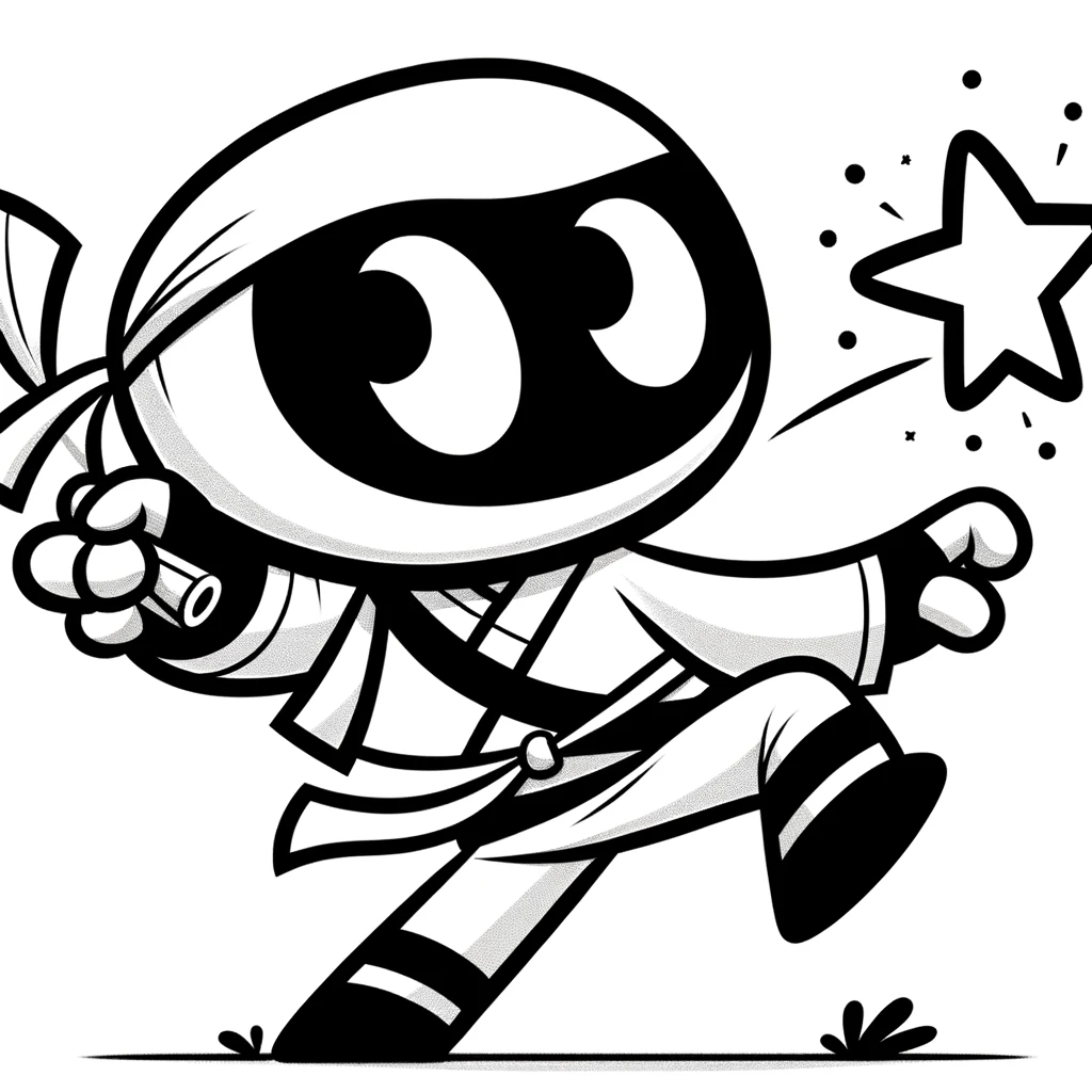 Dynamischer Ninja in Aktion, der einen Wurfstern wirft - perfekt für alle, die actiongeladene Szenen lieben.
