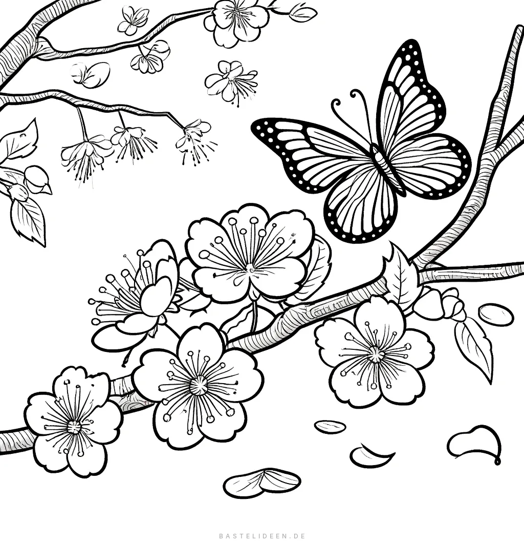 Elegante Schmetterling und Sakura-Blüten Malvorlage