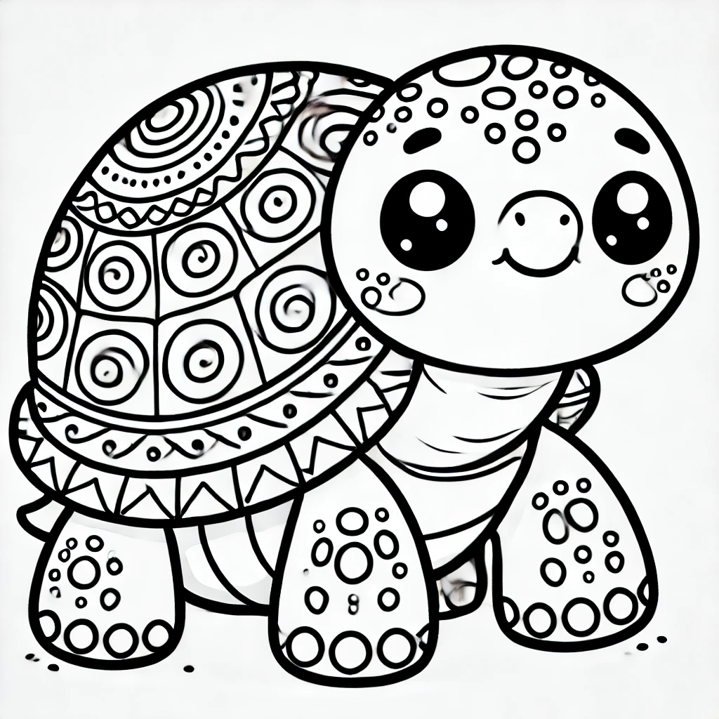 Diese niedliche Schildkröte hat einen wunderschön gemusterten Panzer, der perfekt ist, um ihn mit leuchtenden und kreativen Farben auszufüllen.