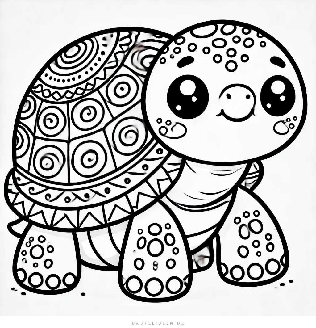 Diese niedliche Schildkröte hat einen wunderschön gemusterten Panzer, der perfekt ist, um ihn mit leuchtenden und kreativen Farben auszufüllen.