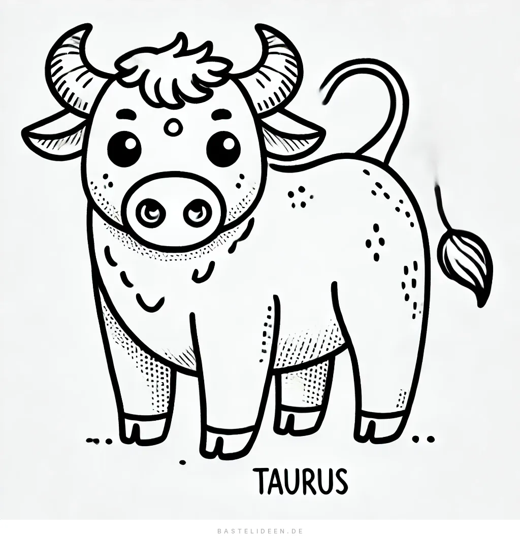Dieses niedliche Stier-Ausmalbild ist perfekt für Kinder, die einfache und charmante Designs lieben. Mit einem freundlichen Stier und süßen Details lädt dieses sternzeichenbezogene Bild zum Ausmalen ein.