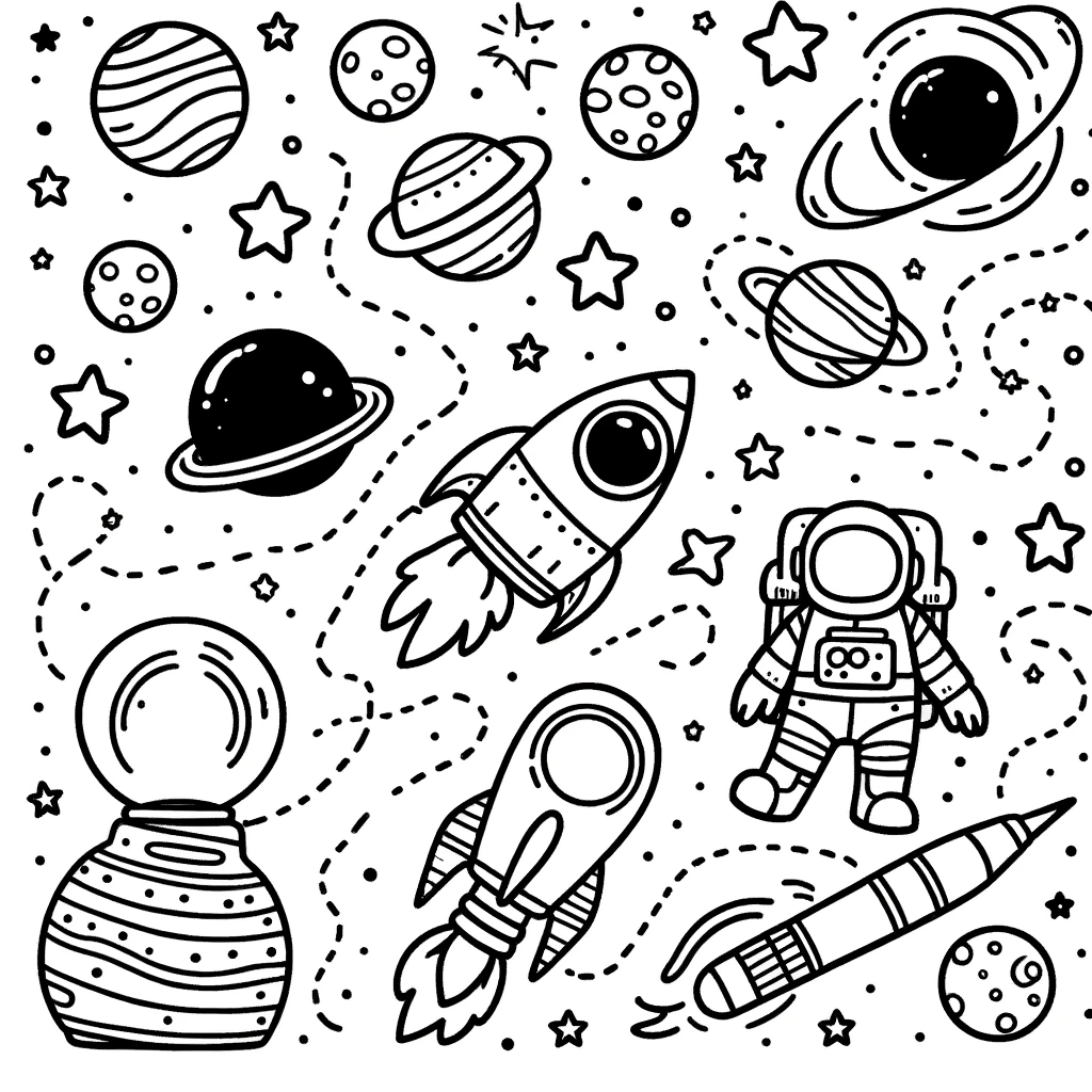 Mit Raketen, Planeten, Astronauten und Sternen bieten diese Illustrationen eine lustige und lehrreiche Möglichkeit, mehr über den Weltraum zu erfahren. Lade die Bilder herunter, drucke sie aus und male diese faszinierenden Seiten, um eine kreative Reise durch die Galaxie zu unternehmen.